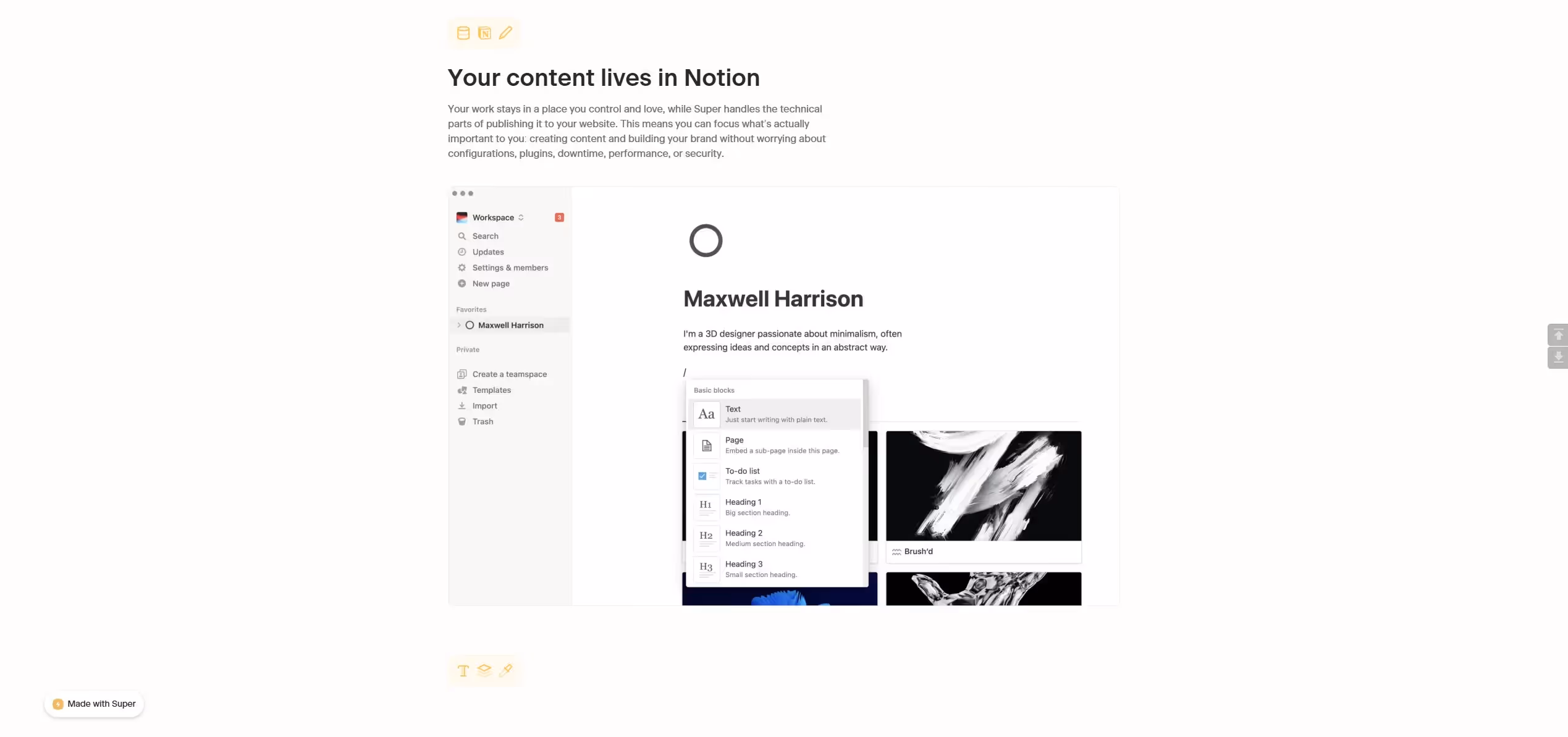 Super.so – Transform your Notion pages into fully customized, professional websites in less than a minute. Enjoy high performance, SEO optimization, and a compelling user experience with great-looking instant page loads. Focus on creating while Super handles the rest.